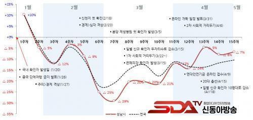 ¼ÒºñÀ² °¨¼Ò°¡ Á¤Á¡À» ÂïÀº ½ÃÁ¡Àº, ½ÅõÁö ±³È¸ °ü·Ã Äڷγª19 È®Áø ȯÀÚ ±ÞÁõÀ¸·Î °¨¿°º´ À§±â °æº¸°¡ ½É°¢ ´Ü°è·Î °Ý»óµÈ 2¿ù23ÀÏ ÀÌÈÄ 3¿ù ù° ÁÖ´Ù.