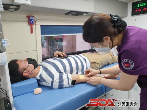 À̹ø ÇåÇ÷¿¡´Â ÀÓÁ÷¿ø°ú ½Ã¹Î 23¸íÀÌ Âü¿©ÇÏ¿´À¸¸ç, Äڷγª19 Àå±âÈ ¿©ÆÄ·Î Ç÷¾×º¸À¯·®ÀÌ¡®ÁÖÀÇ¡¯´Ü°è±îÁö ¶³¾îÁö°í ´Üü ÇåÇ÷ÀÌ ÁÙ¾î Ç÷¾×¼ö±ÞÀÌ ¾î·Á¿î »óȲ¿¡¼ Àǿյµ½Ã°ø»ç¿¡¼ µÎ ¹øÂ°·Î ½Ç½ÃÇÑ Çà»ç¿´´Ù.