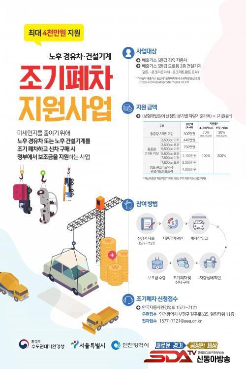 ÇϹݱâ Á¶±â ÆóÂ÷ ½ÅûÀº Áö³­ 6¿ù 1ÀϺÎÅÍ ¼±Âø¼øÀ¸·Î Á¢¼ö ÁßÀ̸ç, Áö¿ø´ë»óÀº ¹èÃâ°¡½º 5µî±Þ °æÀ¯Â÷·Î ÀÚµ¿Â÷°ü¸®¹ý¿¡ µû¶ó °ü´É°Ë»ç °á°ú ÀûÇÕÆÇÁ¤À» ¹Þ°í, ½ÃÈï½Ã¿¡ µî·ÏµÈ Â÷·® Áß ½ÅûÀÏ ÀÌÀü 6°³¿ù ÀÌ»ó ¿¬¼ÓÀ¸·Î ´ë±â°ü¸®±Ç¿ª ¼­¿ï¡¤ÀÎõ¡¤°æ±âµµ¿¡ µî·ÏµÈ Â÷·® µîÀÌ ÇØ´çµÈ´Ù.