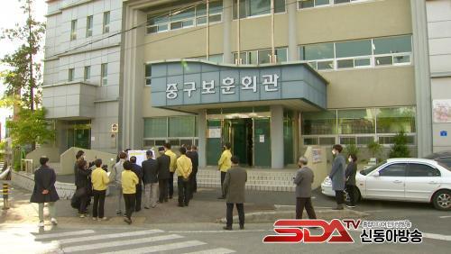Çã ½ÃÀåÀº ù ¹æ¹®Áö·Î Áß±¸ º¸ÈÆÈ¸°ü ¹Î¿øÇöÀåÀ» ã¾Ò´Ù. À̰÷Àº 1993³â ÁذøµÈ °ø°ø½Ã¼³¹°·Î Áö³ÇØ ³»Áø¼º´ÉÆò°¡ °á°ú Á¾ÇÕÆò°¡ ¡®B¡¯µî±Þ ÆÇÁ¤À» ¹Þ¾ÒÀ¸³ª, ÀϺΠºÎÀç°¡ ºØ±«µÇ´Â ¾ç»óÀ» º¸À̰í ÀÖ¾î À̿밴µéÀÇ ¾ÈÀüÀ§ÇèÀÌ Å« °÷ÀÌ´Ù.