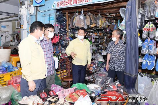 »çÁø=±Ç¿ÀºÀ ¿©¼ö½ÃÀåÀÌ 3ÀÏ ¿ÀÀü ÅÂdz ¸¶ÀÌ»èÀ¸·Î ¹Ù´Ú ÀϺΰ¡ ħ¼öµÈ ±³µ¿½ÃÀå Àϴ븦 µÑ·¯º¸¸ç ÇÇÇØÇöÀåÀ» Á¡°ËÇϰí ÀÖ´Ù.