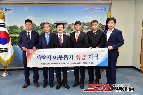 À̳¯ ±âŹ½Ä¿¡´Â ´ëÁöÁ¾ÇհǼ³(ÁÖ)(´ëÇ¥ °­µ¿±¹)°¡ ¼º±Ý 3000¸¸¿ø, NH³óÇùÀºÇà ÁøÁÖ½ÃÁöºÎ(ÁöºÎÀå Á¤´ëÀÎ)°¡ ¼º±Ý 500¸¸¿ø, ÁøÁÖ¿¹¼úºÀ»ç´Ü(´ÜÀå ÃÖÁ¡¼·)ÀÌ ¼º±Ý 200¸¸¿ø, ±¸¼¼±ºÁøÁÖ±³È¸(»ç°ü ±èÀϵ¿)°¡ ¼º±Ý 200¸¸¿øÀ» ±âŹÇß´Ù.