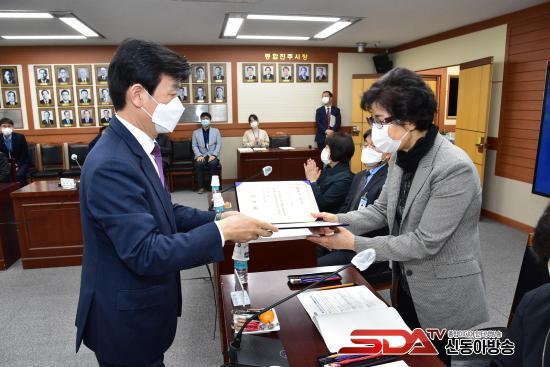 ½ÉÀÇȸÀÇ¿¡ ¾Õ¼± À§¿ø À§Ã˽Ŀ¡¼ Á¶±ÔÀÏ ÁøÁÖ½ÃÀåÀº À§ÃËÁ÷ À§¿ø 5¸í¿¡°Ô À§ÃËÀåÀ» ¼ö¿©ÇÏ¿´°í, Àλ縻À» ÅëÇØ ¡°ºÎ° ÁøÁÖ 3´ë ÇÁ·ÎÁ§Æ®, µµ½ÃÀç»ý ´ºµô»ç¾÷, Ç×°ø±¹°¡»ê¾÷´ÜÁö µî ½Ã¹ÎÀÌ ÇູÇÏ°í °ñ°í·ç Àß»ç´Â ¡ººÎ° ÁøÁÖ¡» °Ç¼³À» À§Çؼ´Â °ÇÀüÀçÁ¤ÀÌ µÞ¹Þħ µÇ¾î¾ß ÇÑ´Ù¡±°í ½ÃÁ¤ ¹ßÀüÀ» À§ÇØ Áö¼ÓÀûÀÎ °ü½ÉÀ» ´çºÎÇÏ¿´´Ù.