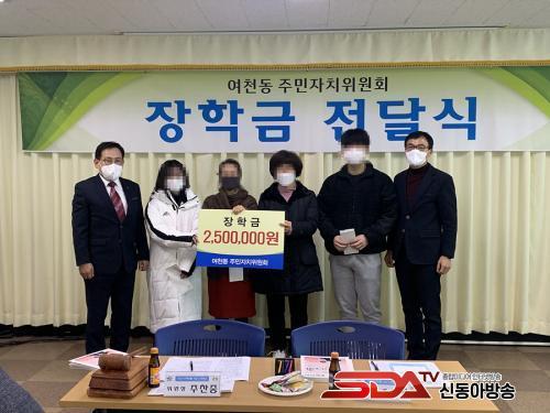 [½Åµ¿¾Æ¹æ¼Û=±è±â³² ±âÀÚ] ¿©Ãµµ¿ÁÖ¹ÎÀÚÄ¡À§¿øÈ¸(À§¿øÀå ÁÖÂùÁß)´Â Áö³­ 22ÀÏ Äڷγª19·Î °æÁ¦Àû ¾î·Á¿òÀ» °Þ°í ÀÖ´Â ÇлýµéÀÇ Çо÷°ú °æÁ¦Àû Áö¿øÀ» À§ÇØ ÃÑ 250¸¸ ¿øÀÇ ÀåÇбÝÀ» Àü´ÞÇß´Ù.