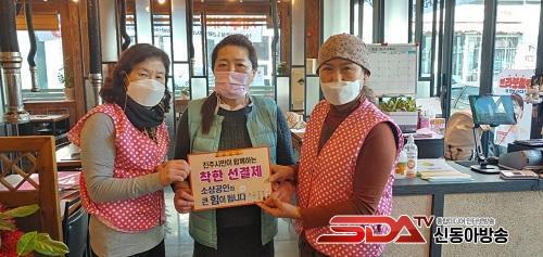 ÀÌ Ä·ÆäÀÎÀº Äڷγª19 È®»êÀ¸·Î ¾î·Á¿òÀ» °Þ°í ÀÖ´Â ¿µ¼¼ ÀÚ¿µ¾÷ÀÚ¿¡°Ô µµ¿òÀ» ÁÖ±â À§ÇØ À½½Ä°ªÀ» ¼±°áÁ¦ÇÏ°í ´ÙÀ½¿¡ Àç¹æ¹®À» ¾à¼ÓÇÏ´Â ÂøÇÑ ¼ÒºñÀÚ ¿îµ¿À¸·Î, ÁøÁֽÿ©¼ºÀÚ¿øºÀ»ç´ë´Â °ü³» ½Ä´ç °÷°÷À» ¹æ¹®ÇØ ÃÑ 500¸¸¿øÀ» ¼±°áÁ¦ Çß´Ù.