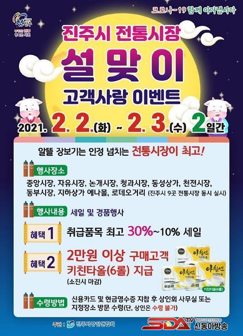 À̹ø Çà»ç´Â ¿À´Â 2¿ù 2ÀϺÎÅÍ 3ÀϱîÁö ÀÌÆ² °£ ÁøÁֽûóÀο¬ÇÕȸ(ȸÀå Â÷¼º¼ö) ¼Ò¼Ó 9°³ ÀüÅë½ÃÀå(Áß¾Ó½ÃÀå, ÀÚÀ¯½ÃÀå, ³í°³½ÃÀå, û°ú½ÃÀå, µ¿¼º»ó°¡, µ¿ºÎ½ÃÀå, õÀü½ÃÀå, ·Îµ¥¿À °Å¸®»óÁ¡°¡, ÁöÇÏ»ó°¡ ¿¡³ª¸ô)ÀÌ µ¿½Ã¿¡ ½Ç½ÃÇÏ¿© ÁøÁֽà ÀüÅë½ÃÀåÀ» ÀÌ¿ëÇÏ´Â °í°´µé¿¡°Ô °¨»çÀÇ ¸¶À½À» ÀüÇϰíÀÚ ¸¶·ÃµÇ¾ú´Ù.