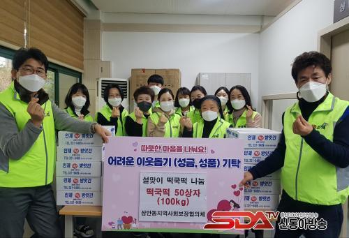 ÀÌ ³¯ Çà»ç´Â »ï¾Èµ¿Áö¿ª»çȸº¸ÀåÇùÀÇü¿¡¼ ¶±±¹ ¶± 50»óÀÚ(100KG)À» ¸¶·ÃÇÏ¿© °ü³» Àú¼Òµæ °èÃþ ¹× ¾Æµ¿º¹Áö½Ã¼³¿¡°Ô Áö¿øÇÏ¿´À¸¸ç, Áö¿ª»çȸº¸ÀåÇùÀÇü À§¿øµéÀº Äڷγª·Î Èûµç ½Ã±â¸¦ º¸³»°í ÀÖ´Â ¾î·Á¿î ÀÌ¿ôÀ» Á÷Á¢ ã¾Æ ºË°í ¾ÈºÎ¿Í À§·Î¸¦ °®´Â ½Ã°£À» °¡Á³´Ù.