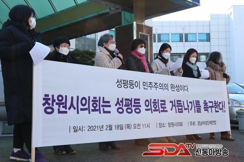 °°Àº³¯ ¿ÀÀü °æ³²¿©¼º´Üü¿¬ÇÕ, °æ³²¿©¼ºÈ¸ µî 13°³ ¿©¼º´Üü´Â °øµ¿À¸·Î â¿ø½ÃÀÇȸ ¾Õ¿¡¼ ±âÀÚȸ°ßÀ» °®°í â¿ø½ÃÀÇȸ¿¡ ¼ºÆòµî ÀÇȸ·Î °Åµì³ª±â À§ÇÑ Àç¹ß¹æÁö ´ëÃ¥ ¸¶·Ã°ú ÀÇ¿øµéÀ» ´ë»óÀ¸·Î ¼ºÀÎÁö°¨¼ö¼º °È ±³À°À» ½Ç½ÃÇÒ °ÍÀ» Ã˱¸Çß´Ù.