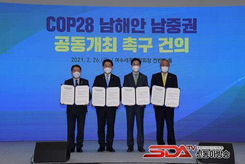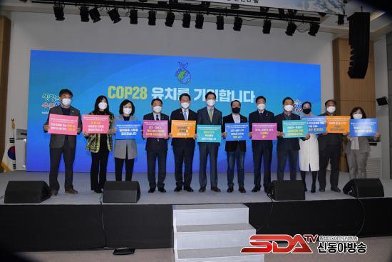Á¦28Â÷ UN±âÈĺ¯ÈÇù¾à´ç»ç±¹ÃÑȸ(ÀÌÇÏ COP28) À¯Ä¡À§¿øÈ¸ °øµ¿À¯Ä¡À§¿øÀåÀÎ ±è°æ¼ö °æ³²µµÁö»ç, ±è¿µ·Ï Àü³²µµÁö»ç, ±Ç¿ÀºÀ ¿©¼ö½ÃÀå, À±»ó±â Çϵ¿±º¼ö¿Í ³²ÇØ¾È ³²Áß±Ç 8°³ ½ÃÀå‧±º¼ö°¡ 26ÀÏ COP28 ³²ÇØ¾È ³²Áß±Ç À¯Ä¡¸¦ À§ÇÑ °øµ¿°ÇÀǹ®¿¡ ¼¸íÇϸç COP28 °øµ¿À¯Ä¡¸¦ À§ÇÑ °áÀǸ¦ ´ÙÁ³´Ù.