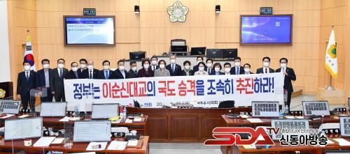 ½ÃÀÇȸ´Â 26ÀÏ ¿¸° Á¦208ȸ ÀÓ½Ãȸ¿¡¼ ³ªÇö¼ö ÀÇ¿øÀÇ ¹ßÀÇÇÑ ¡®À̼ø½Å´ë±³ ±¹µµ ½Â°Ý Ã˱¸¾È¡¯À» °¡°áÇÏ°í ¿©¼ö»ê´Ü ÁøÀÔµµ·Î¸¦ Á¤ºÎ°¡ ü°èÀûÀ¸·Î À¯Áö¡¤°ü¸®ÇØ¾ß ÇÑ´Ù°í °Á¶Çß´Ù.