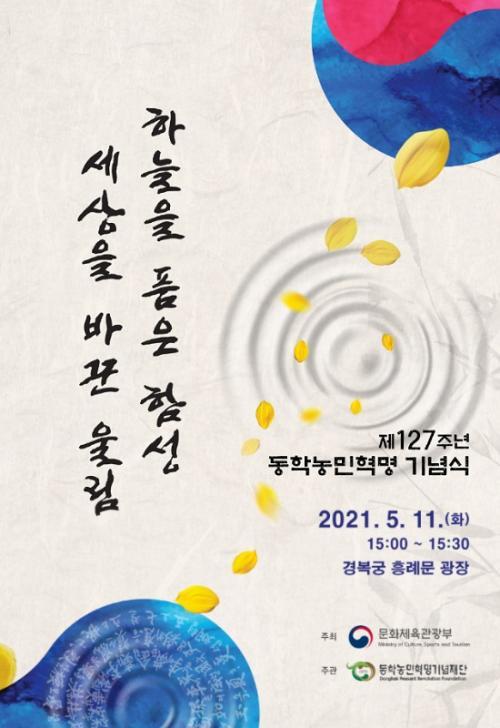 [½Åµ¿¾Æ¹æ¼Û=¾ÈÀº°æ ±âÀÚ] ¹®È­Ã¼À°°ü±¤ºÎ(Àå°ü ȲÈñ)°¡ ÁÖÃÖÇϰí, µ¿Çгó¹ÎÇõ¸í±â³äÀç´Ü(ÀÌ»çÀå ÀÌÇü±Ô)ÀÌ ÁÖ°üÇÏ´Â ¡®Á¦127Áֳ⠵¿Çгó¹ÎÇõ¸í ±â³ä½Ä¡¯ÀÌ ¡®ÇÏ´ÃÀ» ǰÀº ÇÔ¼º, ¼¼»óÀ» ¹Ù²Û ¿ï¸²¡¯À» ÁÖÁ¦·Î 5¿ù 11ÀÏ(È­) ¿ÀÈÄ 3½Ã ¼­¿ï °æº¹±Ã Èï·Ê¹® ±¤Àå¿¡¼­ ¿­¸°´Ù.