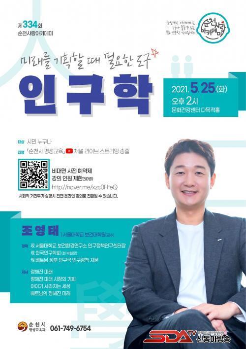 ¿À´Â 5¿ù 25ÀÏ(È) ¿ÀÈÄ 2½Ã ¼øÃµ½Ã ¹®È°Ç°¼¾ÅÍ ´Ù¸ñÀûȦ¿¡¼ °³ÃֵǴ ¼øÃµ»ç¶û¾ÆÄ«µ¥¹Ì´Â ±¹³» ´ëÇ¥ Àα¸ÇÐÀÚ·Î ¸í¼ºÀÌ ³ôÀº ¼¿ï´ëÇб³ º¸°Ç´ëÇпø Á¶¿µÅ ±³¼ö¸¦ ÃÊûÇÏ¿© ¡®¹Ì·¡¸¦ ±âȹÇÒ ¶§ ÇÊ¿äÇÑ µµ±¸, Àα¸ÇС¯À̶ó´Â ÁÖÁ¦·Î °¿¬ÀÌ ÁøÇàµÉ ¿¹Á¤ÀÌ´Ù.