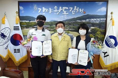 ±èÇØ½Ã´Â Áö³ 11ÀÏ ÀÇ·Î¿î ±èÇØ½Ã¹Î Á¦10È£¿Í 11È£¿¡ ¼±Á¤µÈ ±è³²Èñ(52)¾¾¿Í¡¤¹ÚÁØ¿µ(18)±º¿¡°Ô Áõ¼¿Í °Ý·Á±ÝÀ» Àü´ÞÇß½À´Ï´Ù.