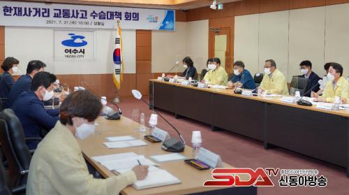 »çÁø= ¿©¼ö½Ã°¡ 21ÀÏ ¿ÀÀü 10½Ã ¿©¼ö½Ãû 2Ãþ »óȲ½Ç¿¡¼­ ¼­±³µ¿ ÇÑÀç»ç°Å¸® ±³Åë»ç°í »óȲ´ëåȸÀǸ¦ ¿­°í ÇÇÇØÀÚ ¹× À¯°¡Á· µî¿¡ ´ëÇÑ Áö¿ø°ú »ç°íÀç¹ß¹æÁö ´ëÃ¥À» ³íÀÇÇϰí ÀÖ´Ù.