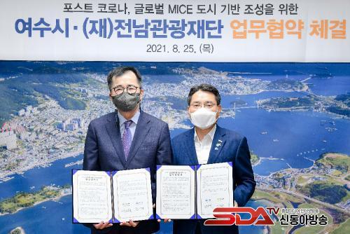 ¿©¼ö½Ã´Â 25ÀÏ ½ÃÀå½Ç¿¡¼­ (Àç)Àü³²°ü±¤Àç´Ü°ú ±Û·Î¹ú MICE µµ½Ã ±â¹Ý Á¶¼ºÀ» À§ÇÑ ¾÷¹«Çù¾àÀ» ü°áÇß´Ù.