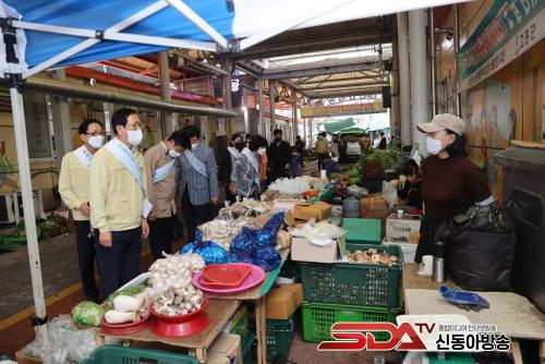 [½Åµ¿¾Æ¹æ¼Û=¹Ú±¤¿Á±âÀÚ] ¼Û±Í±Ù °íÈﱺ¼ö´Â Ãß¼®¸íÀýÀ» ¸Â¾Æ °ü³» ÀüÅë½ÃÀåÀ» ¹æ¹®ÇÏ¿© Äڷγª19·Î ¾î·Á¿òÀ» °Þ°í ÀÖ´Â »óÀεéÀ» °Ý·ÁÇÏ°í ¼ÒÅë¿¡ ³ª¼¹´Ù.