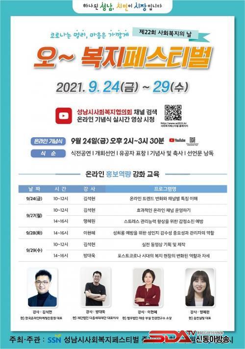 [½Åµ¿¾Æ¹æ¼Û=¹Ú´ë¿µ ±âÀÚ] ¡®Á¦22ȸ »çȸº¹ÁöÀÇ ³¯(9.7)¡¯À» ±â³äÇÑ ¼º³²½Ã »çȸº¹Áö Æä½ºÆ¼¹úÀÌ ¿À´Â 9¿ù 24ÀϺÎÅÍ 29ÀϱîÁö ¿Â¶óÀÎÀ¸·Î °³ÃֵȴÙ.