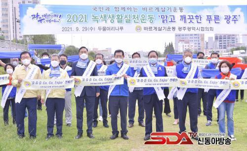 [½Åµ¿¾Æ¹æ¼Û=±èÀçÂù±âÀÚ]Áö³­29ÀÏ À̿뼷 ±¤ÁÖ±¤¿ª½ÃÀå, ¹Ù¸£°Ô»ì±â¿îµ¿±¤ÁÖ½ÃÇùÀÇȸ ³ì»ö»ýȰ½Çõ¿îµ¿ ±è¿ëÁý ½ÃÀÇȸ ÀÇÀå, ¹®ÀÎ ºÏ±¸Ã»Àå, ¼­´ë¼® ¼­±¸Ã»ÀåÀÌ Âü¿©ÇÑ °¡¿îµ¥ ȸ¿ø 300¿©¸í°ú ÇÔ²²¡®2021±¹¹ÎÇູÁöÅ´ÀÌ ³ì»ö»ýȰ½Çõ¿îµ¿¡¯ÀÇ ÀÏȯÀ¸·Î ±¤ÁÖõº¯ µÎ¹°¸Ó¸®³ª·ç¿¡¼­¡®¸¼°í ±ú²ýÇÑ Çª¸¥ ±¤ÁÖ¡¯Á¶¼ºÀ» À§ÇÑ Á¤È­È°µ¿À» ½Ç½ÃÇÏ¿´´Ù.