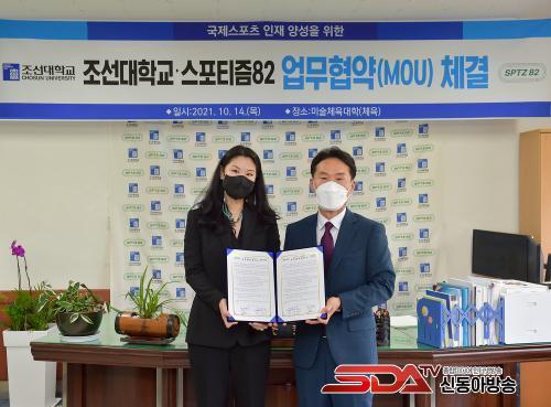 14ÀÏ Á¶¼±´ëÇб³ ¹Ì¼úüÀ°´ëÇÐ 3Ãþ¿¡¼ ÁøÇàµÈ Çù¾à½Ä¿¡´Â Á¶¼±´ëÇб³ ¹Ì¼úüÀ°´ëÇÐ ¼¿µÈ¯ ÇÐÀå, ½ºÆ÷ƼÁò82 ÃÖÁö¾Æ ´ëÇ¥¸¦ ºñ·ÔÇØ ´ëÇÐ ±¸¼º¿ø, °ü°èÀÚ µîÀÌ Âü¼®Çß´Ù.