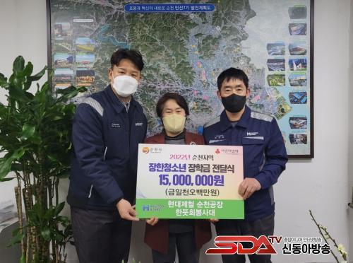 À̳¯ ±âŹµÈ ÀåÇбÝÀº Çö´ëÁ¦Ã¶ ¼øÃµ°øÀå Á÷¿ø 300¸í(Àü Á÷¿øÀÇ 60%)À¸·Î ±¸¼ºµÈ ÇѶæÈ¸ºÀ»ç´ë°¡ ȸ¿ø °³ÀεéÀÌ ³³ºÎÇÑ ±âºÎ±ÝÀ» ¸ð¾Æ ¸¶·ÃÇÑ °ÍÀÌ´Ù.
