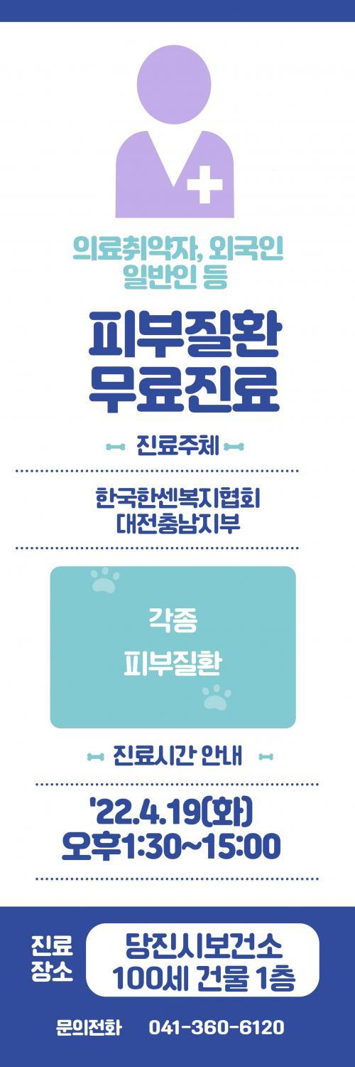 À̹ø ÇǺÎÁúȯ ¹«·á À̵¿Áø·á´Â ÇѼ¾º´À» Á¶±â¿¡ ¹ß°ßÇÏ¿© Ä¡·áÇÔÀ¸·Î ÇѼ¾º´ÀÇ ¹ß»ý ¹× À¯ÇàÀ» ¹æÁöÇϰí Àå¾Ö¸¦ ¿¹¹æÇϱâ À§ÇØ ¸¶·ÃµÇ¾úÀ¸¸ç 2022³â 4¿ù 19ÀÏ ¿ù¿äÀÏ ¿ÀÈÄ 13½Ã 30ºÎÅÍ 15½Ã±îÁö ¾à Çѽ𣠹ݿ¡ °ÉÃÄ ½Ç½ÃÇÏ¿´´Ù.
