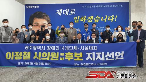 ºÏ±¸ Àå¾ÖÀÎ º¹Áöȸ(ÇÑ»óµæ), »ç)±¤ÁÖ Àå¾ÖÀÎ »ç¶û º¹Áöȸ(ÃÖÈï±Ô), Àå¾ÖÀÎ ¹®È¿¹¼ú Áö¿ø¼¾Å¸(Á¤Áø»ï) µî 14°³ ´Üü´Â 25ÀÏ ¿ÀÀü ±¤ÁÖ½ÃÀÇȸ ÀÌÁ¤Ã¶ ¿¹ºñÈĺ¸ ¼±°ÅÄ·ÇÁ¿¡¼ ±âÀÚȸ°ßÀ» °³ÃÖÇÏ°í ¡°ÁÖ¹ÎÀ» ´ëº¯ÇÏ°í ¼¶±æ ÁÙ ¾Æ´Â ±×·± Á¤Ä¡ÀÎÀ» ÁöÁöÇÑ´Ù¡±¸ç ÀÌÁ¤Ã¶ ¿¹ºñÈ常¦ ÀûÀÓÀÚ·Î ³»¼¼¿ü´Ù.