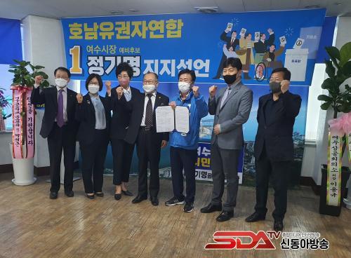 2ÀÏ ¿ÀÈÄ 4½Ã, Á¤±â¸í ¿©¼ö½ÃÀå ¿¹ºñÈĺ¸´Â È£³²À¯±ÇÀÚ¿¬ÇÕ°ú ¡®ÁöÁö ¼±¾ð ÃëÁö¹® Àü´Þ½Ä¡¯À» °¡Á³´Ù.