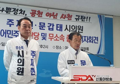 ÁÖÀçÇö ¹®°©ÅÂÀÇ¿øÀº Áö³ 3ÀÏ ¿ÀÈÄ 2½Ã ¿©¼ö½Ãû ºê¸®Çη뿡¼ ±âÀÚȸ°ßÀ» ¿°í ¡°Çö¿ª ½ÃÀÇ¿øÀε¥µµ ¾î¶°ÇÑ »çÀ¯µµ ¸ð¸£´Â ä ¹ÎÁÖ´ç °øÃµ¿¡¼ ¹èÁ¦µÆ´Ù¡±¸ç ¡°¿øÄ¢µµ ±âÁصµ ¾ø´Â °øÃµ½É»ç °á°ú¸¦ ¹Þ¾ÆµéÀÏ ¼ö ¾ø¾î ¹ÎÁÖ´çÀ» Å»ÅÁÇÏ°í ¹«¼Ò¼ÓÀ¸·Î Ãâ¸¶ÇØ Áö¿ªÁÖ¹ÎÀÇ ¼±ÅÃÀ» ¹Þ°Ú´Ù¡±°í ¹àÇû´Ù.