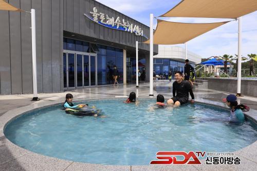 ÇÑÆí, À²Æ÷¼Ö¹çÇØ¼ö¿åÀåÀ» ¹Ù¶óº¸¸ç ÇØ¼ö ³ëõ¿åÀ» Áñ±æ ¼ö ÀÖ´Â ¡®À²Æ÷ÇØ¼ö³ìÂ÷¼¾ÅÍ¡¯´Â ÁöÇÏ 120m ¾Ï¹ÝÃþ¿¡¼­ ²ø¾î¿Ã¸° ÇØ¼ö¿Í º¸¼º³ìÂ÷¸¦ ÀÌ¿ëÇÑ Èú¸µ¼¾ÅÍ´Ù.