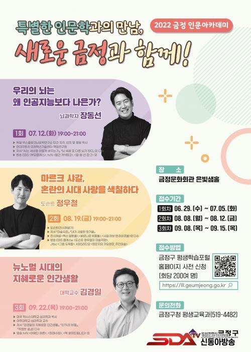 À̹ø Àι®ÇРƯ°Àº 7¿ùºÎÅÍ 9¿ù±îÁö ¸Å¿ù 1ȸ¾¿, ÃÑ 3ȸ µ¿¾È Àú¸íÀÛ°¡µéÀ» ÃÊûÇÏ¿© ´Ù¾çÇÑ ÁÖÁ¦·Î ¿î¿µµÇ¸ç, ±× ½ÃÀÛÀº 7¿ù 12ÀÏ(È) Àú³á 7½Ã ±ÝÁ¤¹®Èȸ°ü Àººû»ùȦ¿¡¼ ¡®ºÎ¸ðŬ·¡½º, ¾Ë¾µ½ÅÀ⡯ µî ¹æ¼Û Ã⿬À¸·Î À¯¸íÇÑ À嵿¼± ³ú°úÇÐÀÚÀÇ ¡®¿ì¸®ÀÇ ³ú´Â ¿Ö ÀΰøÁö´Éº¸´Ù ³ªÀº°¡?¡¯¶ó´Â Á¦¸ñÀ¸·Î ÁøÇàµÉ ¿¹Á¤ÀÌ´Ù.