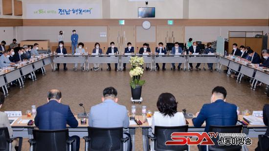 9ÀÏ ¿ÀÀü 10½Ã ¿©¼ö½Ãû ȸÀǽǿ¡¼ ¿¸° ´çÁ¤ÇùÀÇȸ¿¡´Â Á¤±â¸í ¿©¼ö½ÃÀå, ÁÖöÇö‧±èȸÀç ±¹È¸ÀÇ¿ø, ½ÃÀÇȸ ÀÇÀå, µµ‧½ÃÀÇ¿øÀ» ºñ·ÔÇÑ ´çÁ÷ÀÚ 60¿©¸íÀÌ Âü¼®Çß´Ù.