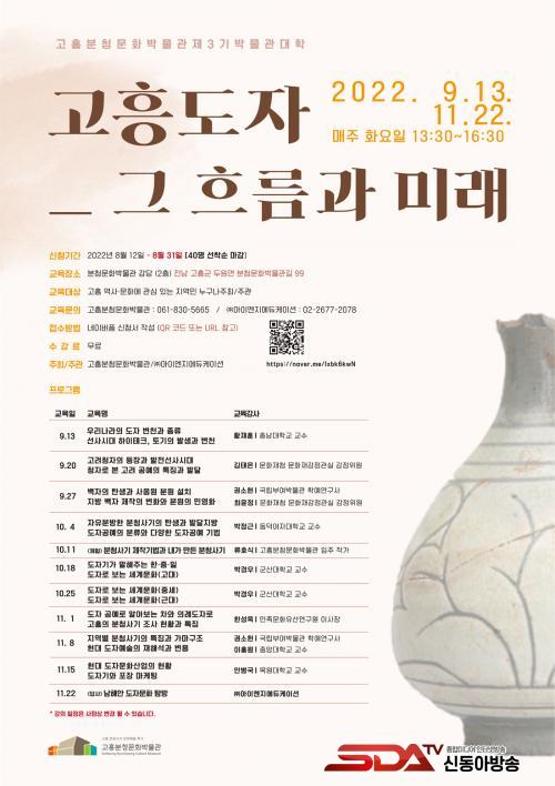 À̹ø ¹Ú¹°°ü ´ëÇÐÀº "°íÈï µµÀÚ-±× È帧°ú ¹Ì·¡: °íÈïÁö¿ª µµÀÚ º¯Ãµ°ú ºÐû»ç±â"¶ó´Â Á¦¸ñÀ¸·Î ¿À´Â 9¿ù 13ÀϺÎÅÍ 11¿ù 22ÀϱîÁö 10ÁÖ µ¿¾È ¸ÅÁÖ È¿äÀÏ ¿ÀÈÄ 1½Ã 30ºÐºÎÅÍ 4½Ã 30ºÐ±îÁö 1ÀÏ 2°Á¾¿ ¹Ú¹°°ü °´ç¿¡¼ ÁøÇàµÉ ¿¹Á¤À̸ç, ¿À´Â 8¿ù 12ÀϺÎÅÍ 9¿ù 7ÀϱîÁö ¼±Âø¼øÀ¸·Î ¼ö°»ýÀ» ¸ðÁýÇÑ´Ù.