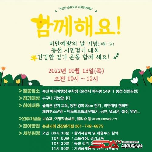 ƯÈ÷, ¿À´Â 13ÀÏ¿¡´Â 10½ÃºÎÅÍ ¡®µ¿Ãµ ½Ã¹Î °È±â´ëȸ¡¯°¡ ¿¸°´Ù. µ¿Ãµ õº¯°ø¿ø(±¸ ¸Å°îºñÇàÀå)¿¡¼ dz´ö±³±îÁö ¿Õº¹ 5km¸¦ ¿ÏÁÖÇϱâ¿Í ÇÔ²² ¿Ã¹Ù¸¥ °È±â ±³À°, ¾ÆÅäÇÇ Ãµ¿¬º¸½ÀÁ¦ ¸¸µé±â, ¿µ¾ç, ±Ý¿¬, ÀýÁÖ ¸¸¼ºÁúȯ¿¹¹æ, AI¡¤IoT °Ç°°ü¸® üÇèµµ ÇÒ ¼ö ÀÖ´Ù. Âü¿©¸¦ ¿øÇÏ´Â ½Ã¹ÎÀº ¼øÃµ½Ã º¸°Ç¼Ò °Ç°°ü¸®ÆÀ(061-749-6875)À¸·Î ¹®ÀÇÇÏ¸é µÈ´Ù.
