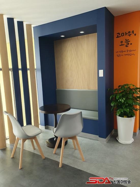 Æ÷µÎÁßÇб³ ±¸¼º¿øµéÀÌ °ø°£Çõ½Å¿¡ °ü½ÉÀ» °®°Ô µÈ °ÍÀº 2020³â Çб³ Ä«Æä¸¦ ¸¸µé¸é¼­ºÎÅÍ´Ù. Çб³Ä«Æä°¡ »ý±ä ÈÄ À̰÷¿¡¼­ Çлýȸ Ȱµ¿, µ¿¾Æ¸® Ȱµ¿, ÅäÀÇ, ¼ö¾÷, »ó´ã, ³îÀÌ µîÀ» ÇÏ¸ç ¸ðµÎ°¡ °¡Àå ¾Ö¿ëÇÏ´Â °ø°£ÀÌ µÆ´Ù.