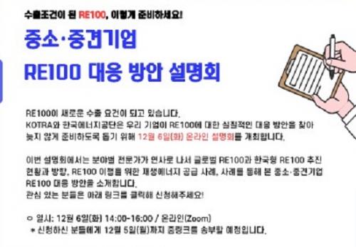 - KOTRA, 6ÀÏ Áß¼Ò¡¤Áß°ß ¼öÃâ±â¾÷ ´ë»ó ¡®RE100 ´ëÀÀ ¹æ¾È ¼³¸íȸ¡¯ ¿Â¶óÀÎ °³ÃÖ