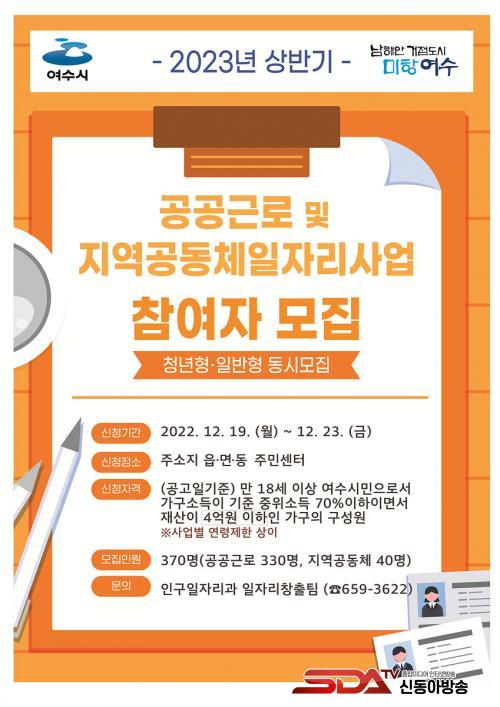 »çÁø= ¿©¼ö½Ã(½ÃÀå Á¤±â¸í)°¡ ¡®2023³â »ó¹Ý±â °ø°øÀÏÀÚ¸®»ç¾÷¡¯ Âü¿©ÀÚ 370¸íÀ» ¸ðÁýÇÑ´Ù.