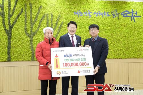 [½Åµ¿¾Æ¹æ¼Û=±è¿ëÈÆ ±âÀÚ] ¼øÃµ½Ã(½ÃÀå ³ë°ü±Ô)´Â 9ÀÏ DSRÁ¦°­ ÁÖ½Äȸ»ç(´ëÇ¥ È«ÇÏÁ¾)°¡ Èñ¸Á2023³ª´®Ä·ÆäÀÎ ÀÌ¿ôµ½±â ¼º±Ý 1¾ï ¿øÀ» ±âŹÇß´Ù°í ¹àÇû´Ù.