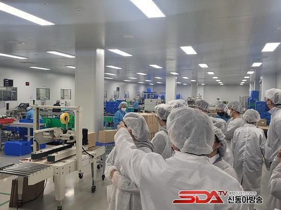 »çÁø=ÀÎõ¹ÙÀÌ¿À°úÇаíµîÇб³ ÇлýµéÀÌ (ÁÖ)À£¸ÞÀ̵å»ýȰ°Ç°­ÀÇ Á¦Á¶½Ã¼³À» ޹æÇϸ鼭 °ü°èÀÚ¿¡°Ô ¼³¸íÀ» µè°í ÀÖ´Ù.