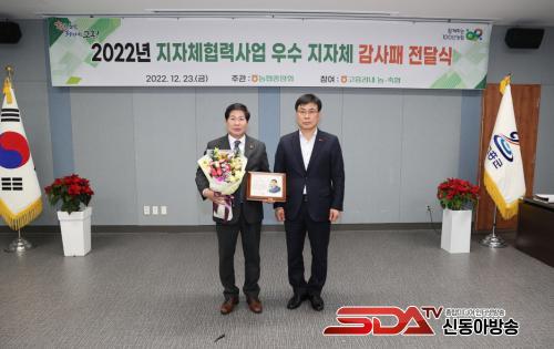 [½Åµ¿¾Æ¹æ¼Û= ¹Ú±¤¿Á ±âÀÚ] °íÈﱺ(±º¼ö °ø¿µ¹Î)ÀÌ ³óÇùÁß¾Óȸ°¡ ÁÖ°üÇÑ 2022³â ÁöÀÚüÇù·Â »ç¾÷ Æò°¡¿¡¼­ ¿ì¼ö ÁöÀÚü·Î ¼±Á¤µÅ 23ÀÏ °¨»çÆÐ¸¦ ¹Þ¾Ò´Ù.