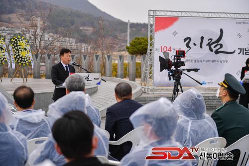 Á¤±â¸í ¿©¼ö½ÃÀåÀº ±â³ä»ç¿¡¼ ¡°Á¶±¹ ±¤º¹À» À§ÇØ °í±ÍÇÑ ¸ñ¼ûÀ» ¹ÙÃÄ Èñ»ý°ú Çå½ÅÀ» ¸¶´ÙÇÏÁö ¾ÊÀ¸½Å µ¶¸³¼±¿²² °í°³ ¼÷¿© °¨»ç¿Í °æÀǸ¦ Ç¥ÇÑ´Ù¡±¸ç ¡°¿ì¸®½Ãµµ µ¶¸³À¯°øÀÚ¸¦ Àû±Ø ¹ß±¼ÇØ ¸í¿¹¸¦ ȸº¹ÇØ µå¸®°í ¼±¾ç°ú º¸ÈÆ¿¡ ´õ¿í Èû¾²°Ú´Ù¡±°í ¸»Çß´Ù.