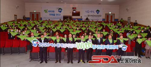 Âü¼®ÀÚµéÀº 2026¿©¼ö¼¼°è¼¶¹Ú¶÷ȸ ÁÖÁ¦ÀÎ ¡®¼¶, ¹Ù´Ù, ¹Ì·¡¡¯¸¦ ÀÕ´Â ÆÛÆ÷¸Õ½º¿¡ ÀÌ¾î ´ÙÇÔ²²(WITH)¸¦ ¿ÜÄ¡¸ç ¼¶¹Ú¶÷ȸ ¼º°ø °³ÃÖ¸¦ À§ÇÑ ±»Àº °áÀǸ¦ ´ÙÁüÇß´Ù.