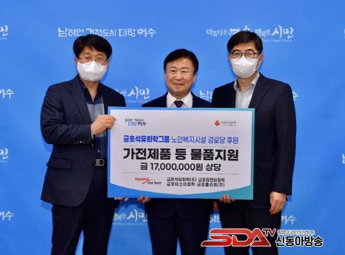 ¿©¼ö½Ã¿¡ µû¸£¸é 24ÀÏ ½ÃÀå½Ç¿¡¼ Á¤±â¸í ½ÃÀå, ±ÝÈ£¼®À¯ÈÇÐ(ÁÖ) Àå°©Á¾ °øÀåÀå, À̽Âö »ó¹«, ±ÝÈ£Æú¸®ÄÍ(ÁÖ) ÃÖ¿µ¼± Àü¹«°¡ Âü¼®ÇÑ °¡¿îµ¥ ÈÄ¿ø¹°Ç° Àü´Þ½ÄÀÌ ¿·È´Ù.