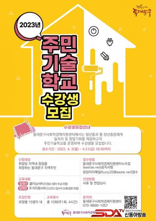 Ŭ¸®´× ¹× ÁÖ°ÅÁö¿ø¼ºñ½º ±âº»°úÁ¤ÀÇ ¸ðÁýÀοøÀº °¢ 15¸íÀ̸ç, ¿À´Â 21ÀϱîÁö Âü¿©ÀÚ¸¦ ¸ðÁýÇÑ´Ù. ¸ðÁý ´ë»óÀº Áö¿ª ³» Ãë¾÷ ¹× â¾÷À» ¿øÇÏ´Â ±¸¹ÎÀ̸ç, ¼ö°À» ¿øÇÏ´Â °æ¿ì µ¿´ë¹®±¸»çȸÀû°æÁ¦Áö¿ø¼¾ÅÍ ´©¸®Áý¿¡¼ ½ÅûÇÒ ¼ö ÀÖ´Ù.
