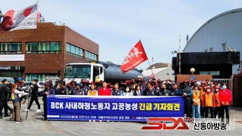 À̳¯ ºñ¸¦¶óÄ«º»ÄÚ¸®¾Æ »ç³»ÇÏûÁöȸµµ ¿ÀÀü 10½Ã 35ºÐ °øÀå Á¤¹®¿¡¼ ±ä±Þ ±âÀÚȸ°ßÀ» °¡Á³´Ù. ±âÀÚȸ°ß¿¡´Â ³ëµ¿Á¶ÇÕ¿ø°ú ¹ÎÁÖ³ëÃÑ, Áøº¸´ç Àü³²µµ´ç, ¿©¼ö½Ã¹Î»çȸ´Üü¿¬´ëȸÀÇ °ü°èÀÚµéÀÌ Âü¼®Çß´Ù.