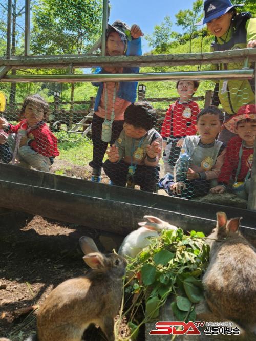 [½Åµ¿¾Æ¹æ¼Û=¹Ú±¤¿Á±âÀÚ] 10ÀÏ º¸¼º±º Á¦¾Ï»êÀÚ¿¬È޾縲 À¯¾Æ ½£ üÇèÀå¿¡¼ º¸¼º º°¹çÀ¯Ä¡¿ø»ýµéÀÌ Åä³¢¿¡°Ô ¸ÔÀ̸¦ °Ç³×ÁÖ°í ÀÖ´Ù.
