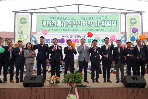ÇÑÆí, À̳¯ Ư¼ºÈ½ÃÀå ù°ÉÀ½±â¹Ý»ç¾÷ ¼±Æ÷½Ä¿¡ ÀÌ¾î ¹«¾ÈÀüÅë½ÃÀå»óÀÎȸ Á¦3´ë ¹®Á¤¼ö ȸÀå ÃëÀӽĵµ ¿·Á »óÀÎȸ ȸ¿ø ¸ðµÎ°¡ ÇÕ½ÉÇØ ¹®È°ü±¤Çü½ÃÀåÀ¸·Î µµ¾àÇÒ ¼ö ÀÖµµ·Ï ´Ù½Ã Çѹø ´õ ÀÇÁö¸¦ ´ÙÁö´Â °è±â¸¦ ¸¶·ÃÇß´Ù.