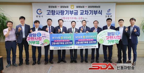 ±âºÎ½ÄÀº ±¤¾ç³óÇù(Á¶ÇÕÀå Çã¼ø±¸)°ú Èï¾ç³óÇù(Á¶ÇÕÀå Á¶¼º¹®) ÀÓÁ÷¿ø °¢°¢ 100¸íÀÌ 1,000¸¸¿øÀ», ±¤¾ç¿ø¿¹³óÇù(Á¶ÇÕÀå ±è¿µ¹è)°ú ÆÈ¿µ³óÇù(Á¶ÇÕÀå Á¤¿µ¸¸) ÀÓÁ÷¿ø °¢°¢ 50¸íÀÌ 500¸¸¿øÀ» ±³Â÷ ±âºÎÇÏ¸ç ³óÇù °£ »ó»ýÇù·ÂÀ» ¾à¼ÓÇϰí Áö¿ª¹ßÀüÀ» ÀÀ¿øÇß´Ù.