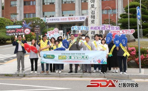[½Åµ¿¾Æ¹æ¼Û´º½º=ÃÖ¼ÛÈ­±âÀÚ] ±èÇØ½Ã´Â Á¦36ȸ ¼¼°è ±Ý¿¬ÀÇ ³¯À» ¸ÂÀÌÇØ 31ÀÏ ½Ãû ÀÔ±¸¿¡¼­ Ãâ±ÙÇÏ´Â Á÷¿øµéÀ» ´ë»óÀ¸·Î Ãâ±Ù±æ ±Ý¿¬ Ä·ÆäÀÎÀ» ½Ç½ÃÇß´Ù°í ¹àÇû´Ù.