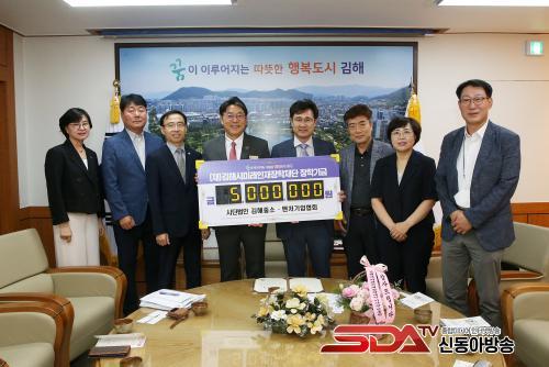 [½Åµ¿¾Æ¹æ¼Û´º½º=ÃÖ¼ÛÈ­±âÀÚ] ±èÇØ½Ã¹Ì·¡ÀÎÀçÀåÇÐÀç´Ü(ÀÌ»çÀå ÇöÁ¾¿ø)Àº 1ÀÏ ±èÇØÁß¼Ò¡¤º¥Ã³±â¾÷Çùȸ(ȸÀå Á¶¼®Á¦)¿¡¼­ 500¸¸¿øÀ» ±âŹÇß´Ù°í ¹àÇû´Ù.