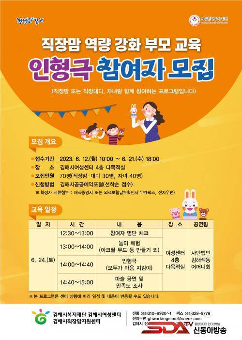 ±èÇØ½Ã¿©¼º¼¾ÅÍ(Á÷À帾Áö¿ø¼¾ÅÍ)ÀåÀº ¡°ÇöÀç¿Í °°ÀÌ À½¶õ¹°À» Á¢ÇÏ´Â ³ªÀÌ´ë°¡ Á¡Á¡ ¾î·ÁÁü¿¡ µû¸¥ ºÎ¸ðÀÇ °í¹Î°ú ±³À°ÀÇ Çʿ伺À» Àý½ÇÈ÷ ÀνÄÇϱ⿡ À̹ø ÀÎÇü±Ø Çü½ÄÀÇ ½±°í Àç¹Õ´Â ¼º±³À°À» ÅëÇØ ¸¹Àº ±èÇØ½Ã Á÷À帾¡¤´ëµðµé¿¡°Ô ºÎ¸ð ¿ªÇÒÀÇ Á߿伺°ú ÀÚ³à µ¹º½¿¡ Á¶±ÝÀ̳ª¸¶ µµ¿òÀÌ µÇ°íÀÚ ÇÑ´Ù.¡±¶ó°í ¹àÇû´Ù.